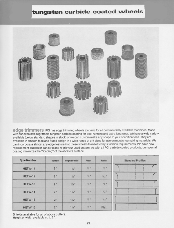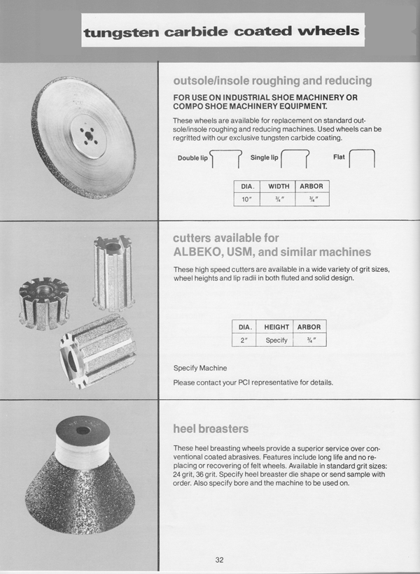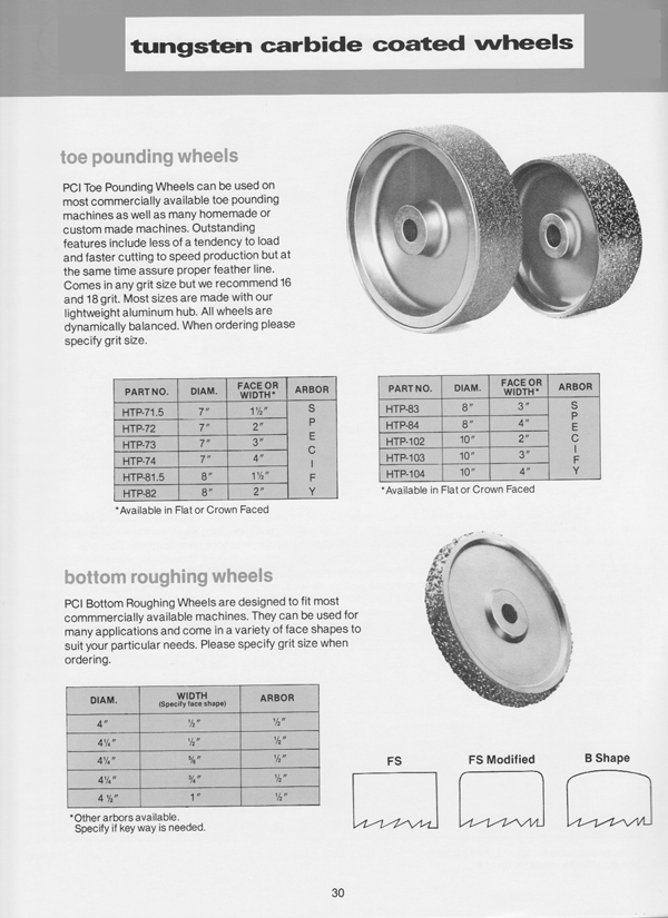 United Global regrittable carbide abrasive wheels are an invaluable finishing tool for heel scouring, toe pounding, bottom roughing or edge trimming. Cutting cleaner and faster, these wheels wear longer to save you money.